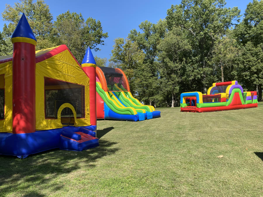 This Package Deal includes our 17' Fun Dual Slide, a 30' Obstacle Course, and a large size Bounce House.