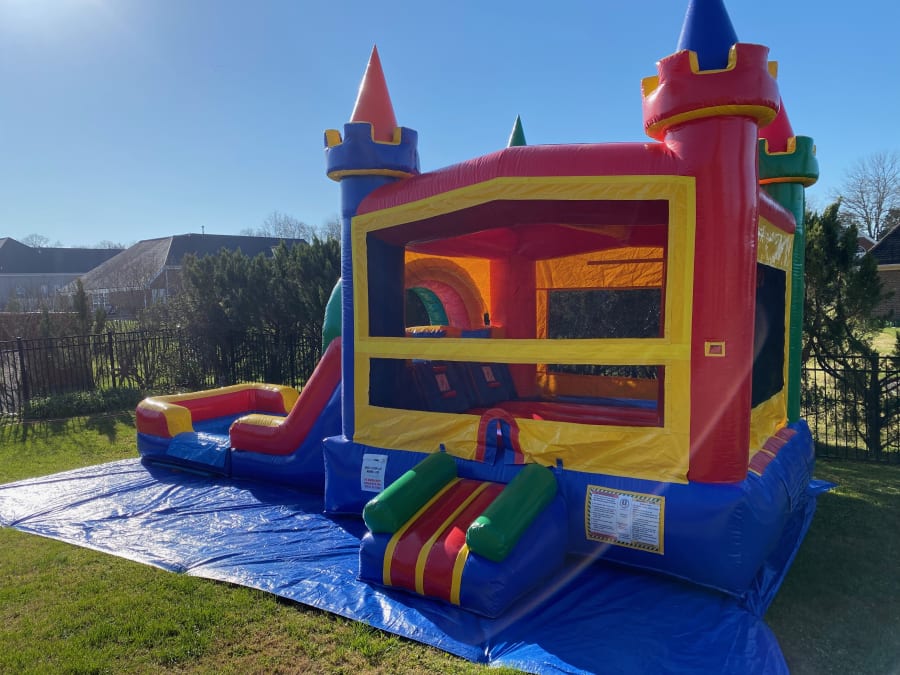 Whether you're hosting a backyard birthday party, a neighborhood gathering, or a corporate event, our Castle - Slide Combo is sure to be a hit. Its vibrant colors and sturdy construction guarantee hours of safe and thrilling fun for the kids!