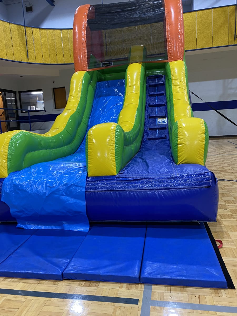 This colorful, 15 foot tall slide is great for backyard parties and events! This Dry Slide will be a hit at your next Spring Fling or Fall Festival. We recommend this slide for ages 2 to 12. The weight limit is 150 lbs per rider.