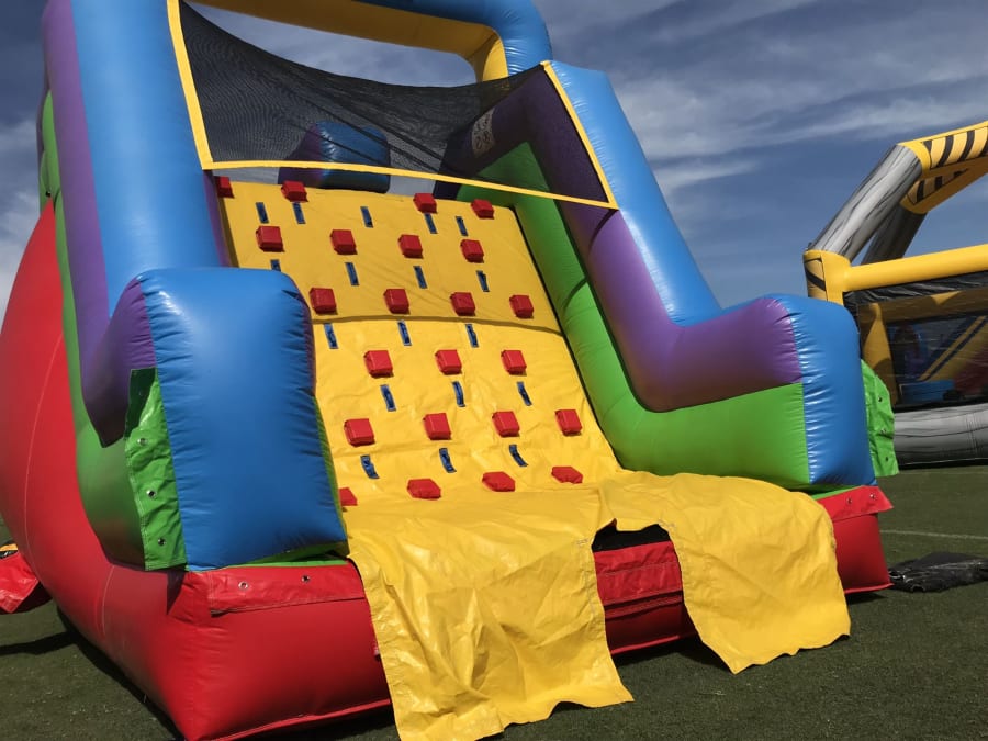 This inflatable slide rental is perfect for your adventurous kiddos! Climbing Wall and Double Lane Slide!
