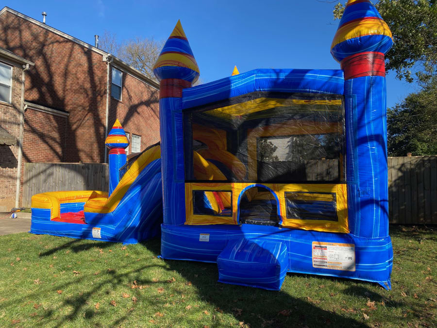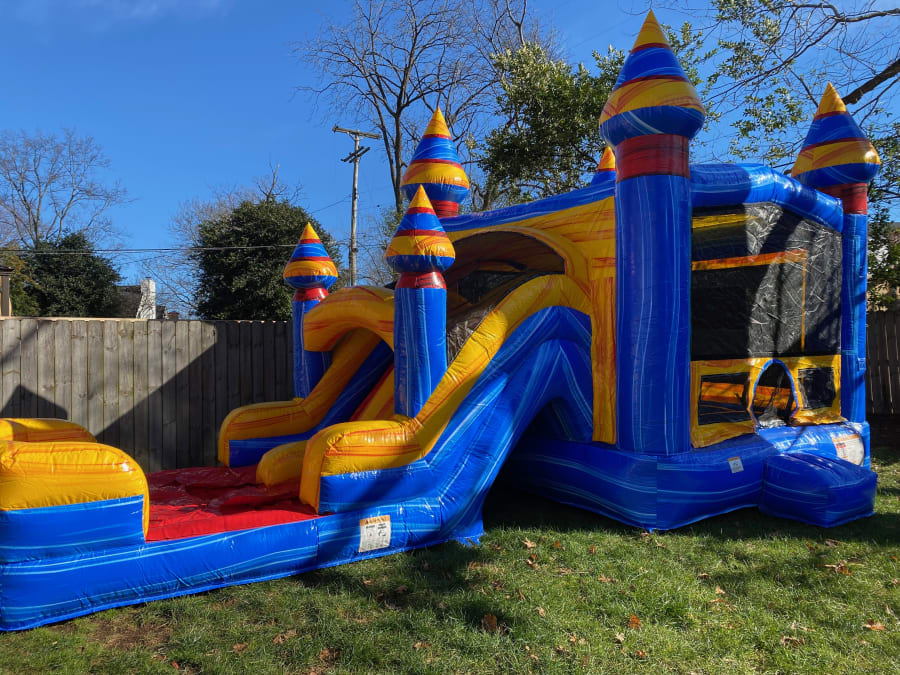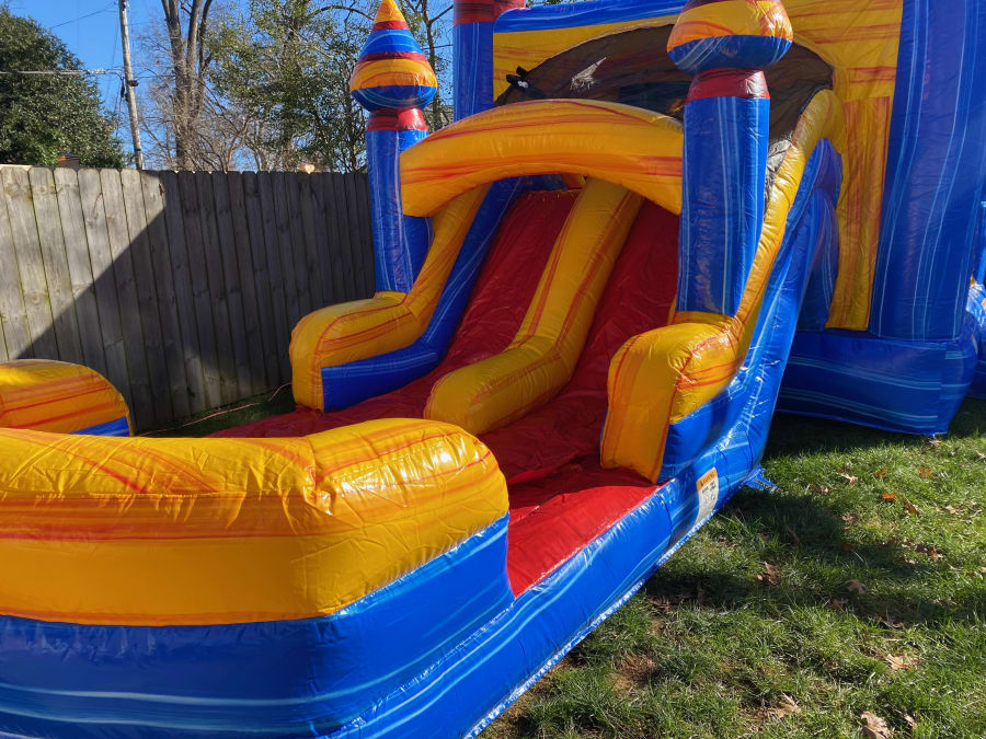 Bright. Bold. Built for fun! The Fire & Ice Combo (wet or dry) combines a roomy bounce area with a double-lane slide. Use it as a dry slide, or add water for a splash-ready birthday party. Perfect for kids, ages 12 and under, who want fast fun and big thrills. 🎉