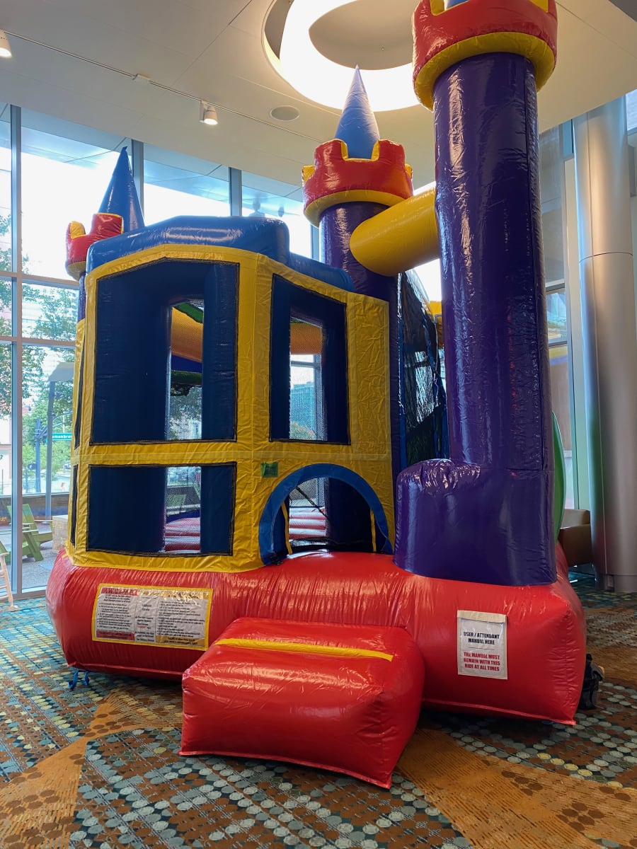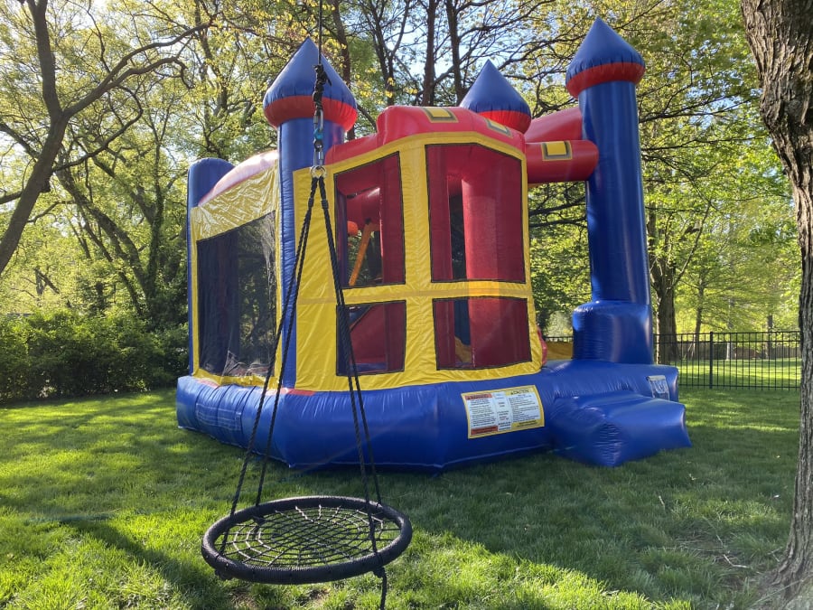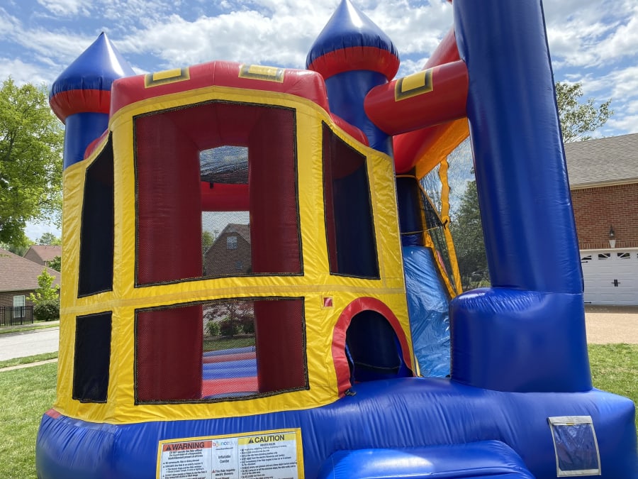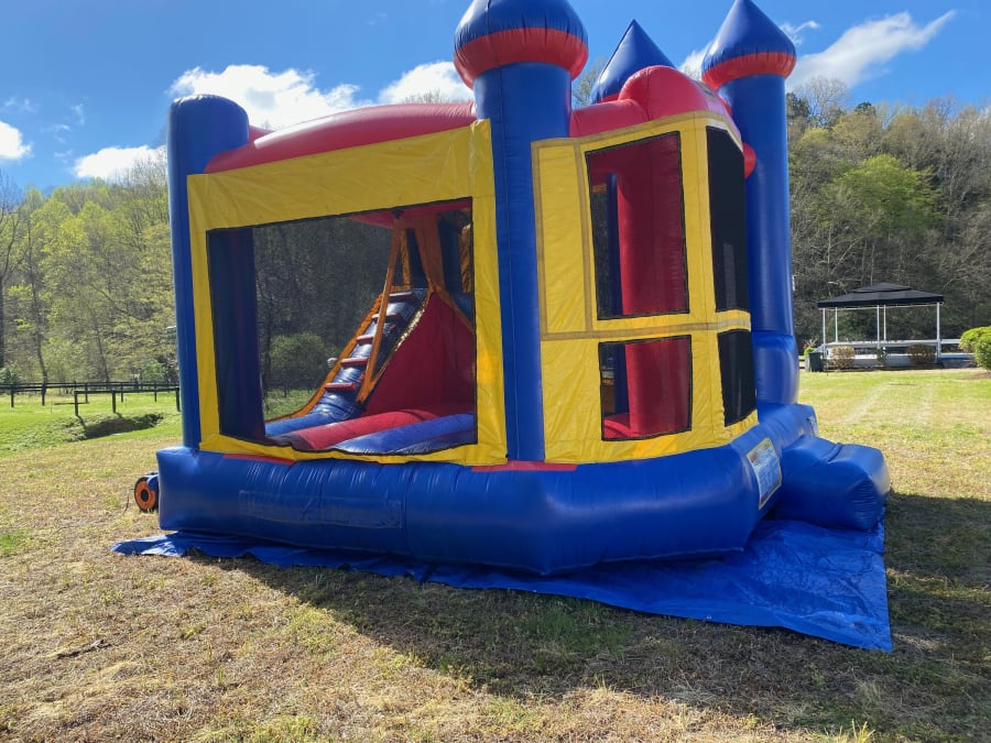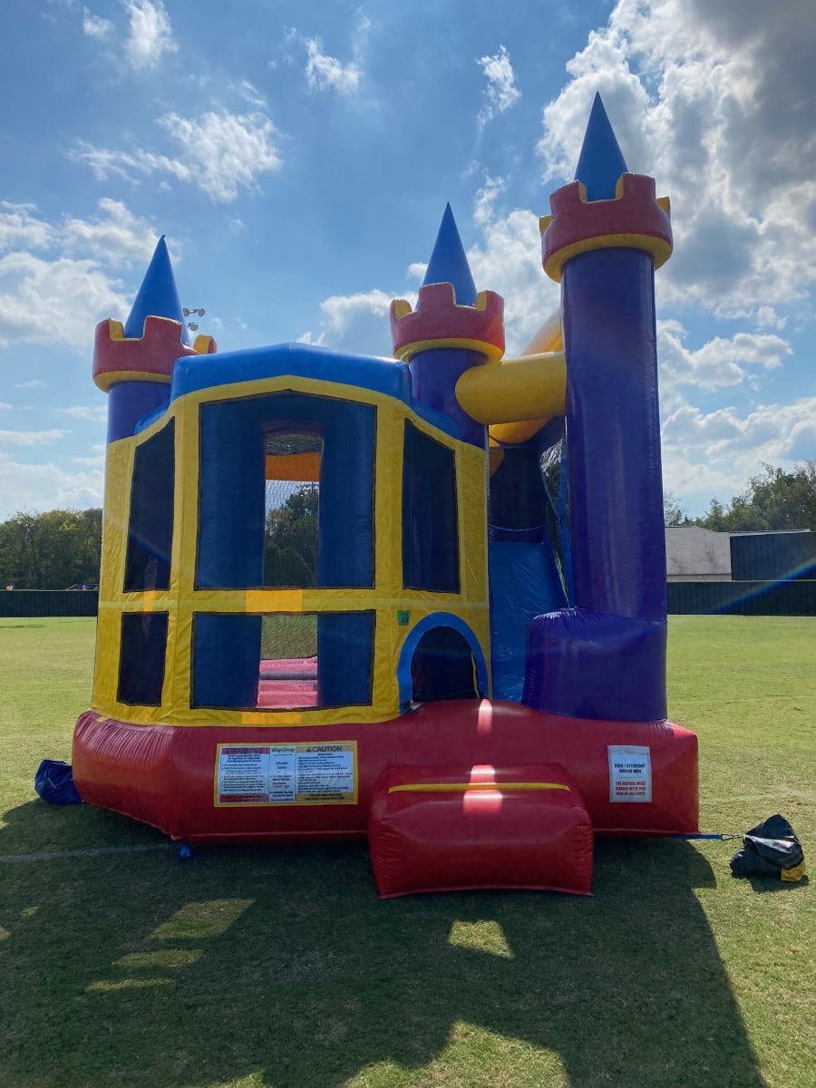 This Classic Castle Combo is perfect for your backyard party! Bounce, Climb, Slide, and a Basketball Hoop!