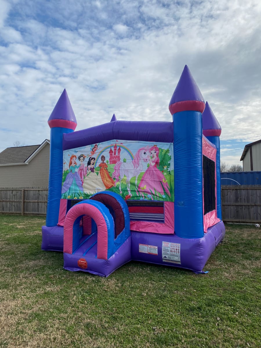 The perfect Bouncy Castle for your Princess! And it has a basketball hoop inside!