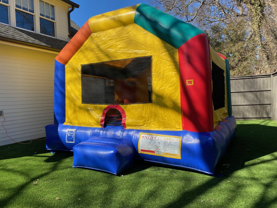 This Large Size, Fun House is perfect for backyard parties and events! It is a true classic, Bounce House, and provides over 200 square feet of bouncing joy! There is plenty of room for kids to bounce. And it has a basketball hoop! (ball not included)