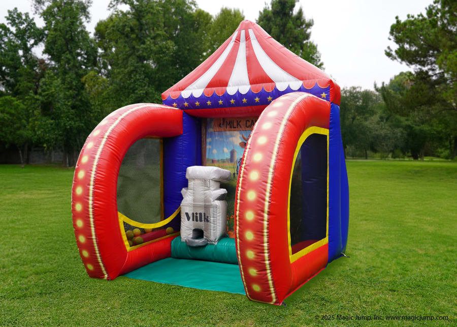 The Milk Can Toss can also be connected with other inflatable carnival games to build a complete lineup of carnival fun.
