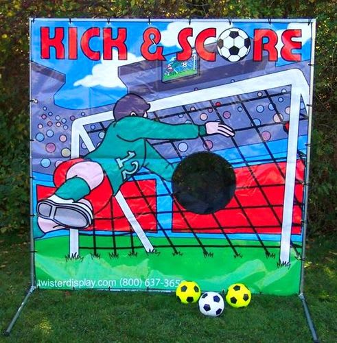 The Kick & Score Soccer frame game is a winner at any sporting event, fund raiser, or carnival. It's a very simple game, but irresistible! Soccer players from the little tykes to the big kids will be lining up to give it a shot.