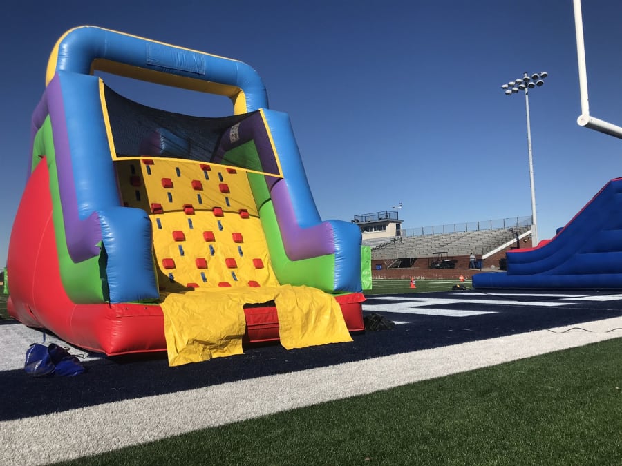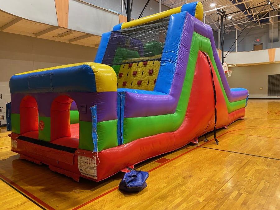 This inflatable slide rental is perfect for your adventurous kiddos! Climbing Wall and Double Lane Slide!