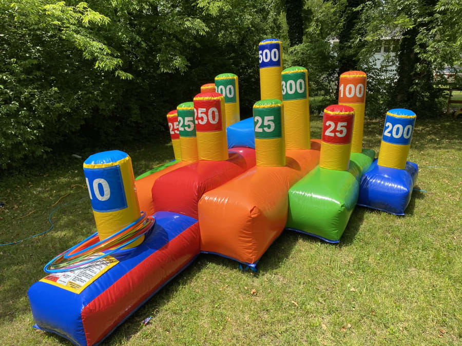 Toss the hula hoop and see who can score the most points! It is like a gigantic Ring Toss Game. Perfect for church, school, or community events!