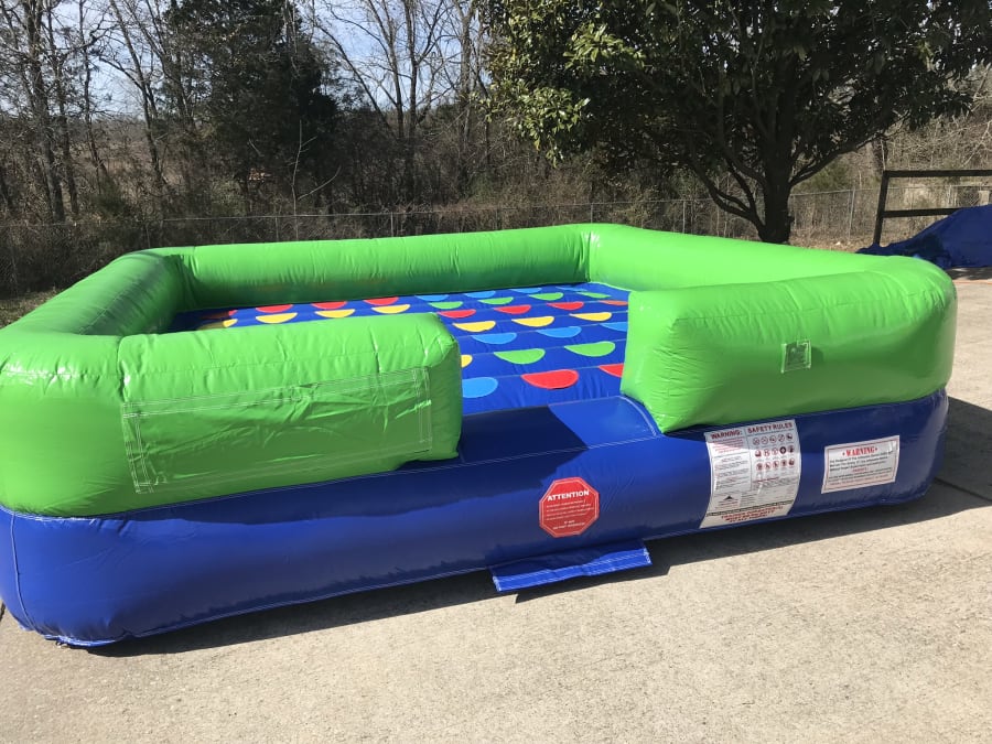Experience the timeless family game on a large scale with the X-Treme Twister Inflatable Interactive Game. Perfect for summer parties, birthday bashes, graduations, or any other event you could possibly imagine! A pair of giant dice instruct players to put right hand on red or left foot on green, etc.