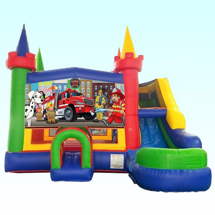 Add this Firefighter Theme to our Castle Bounce House for $209 or upgrade to the Castle with Slide (water or dry) for $299.