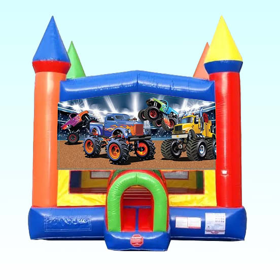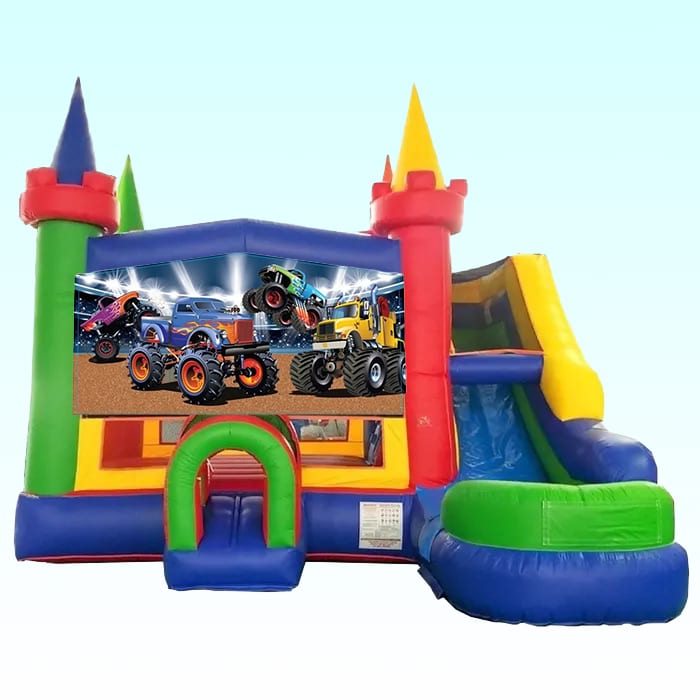 Add this Monster Truck Theme to our Castle Bounce House for $209 or upgrade to the Castle with Slide (water or dry) for $299.