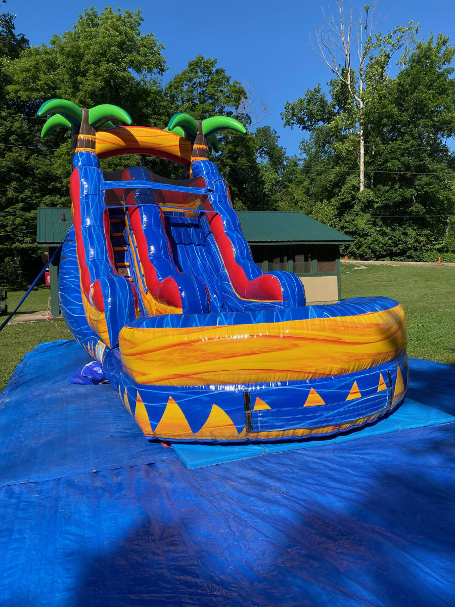 Looking to add some excitement to your backyard party or community event? Look no further than the Fire & Ice - Water Slide rental! This colorful and thrilling 16-foot tall water slide is sure to make a splash and create unforgettable memories for everyone.