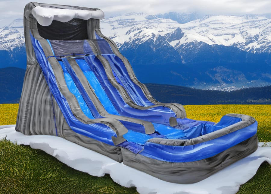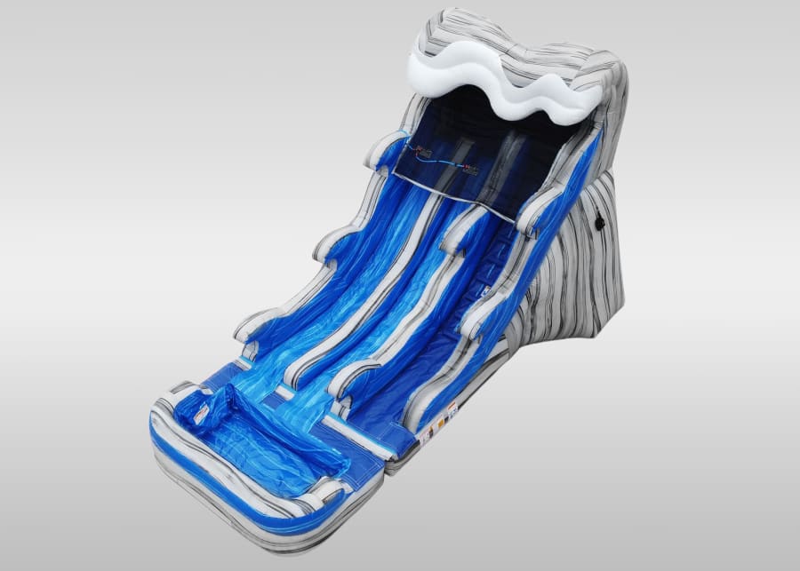 Double Lanes and Double the Fun! This water slide is 17 feet tall with 2 sliding lanes into a big splash pool!