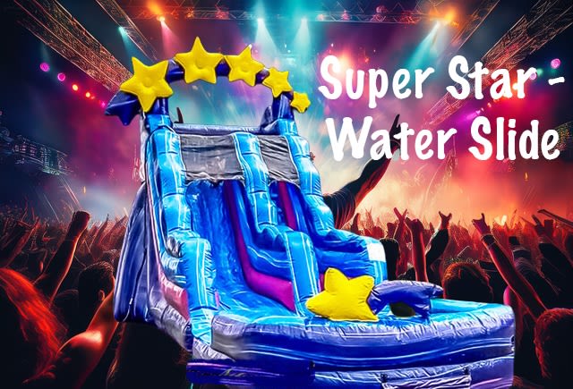 Book the Super Star - Water Slide now to secure your date. Create memorable moments, amazing photos, and big smiles at your next backyard party or birthday party. Make your reservation online, or Contact us for help. 🎉