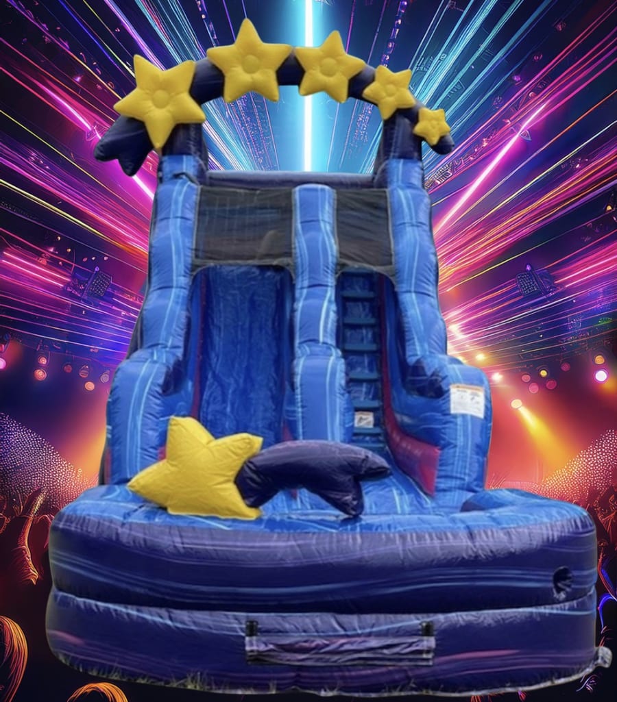 Make your next event unforgettable with the Super Star - Water Slide. This 16 foot tall water slide features vibrant colors, a bold star design, and a large splash pool that delights kids and adults alike. Perfect for a backyard bbq or birthday party, it delivers high-impact thrills with safe, family-friendly play.