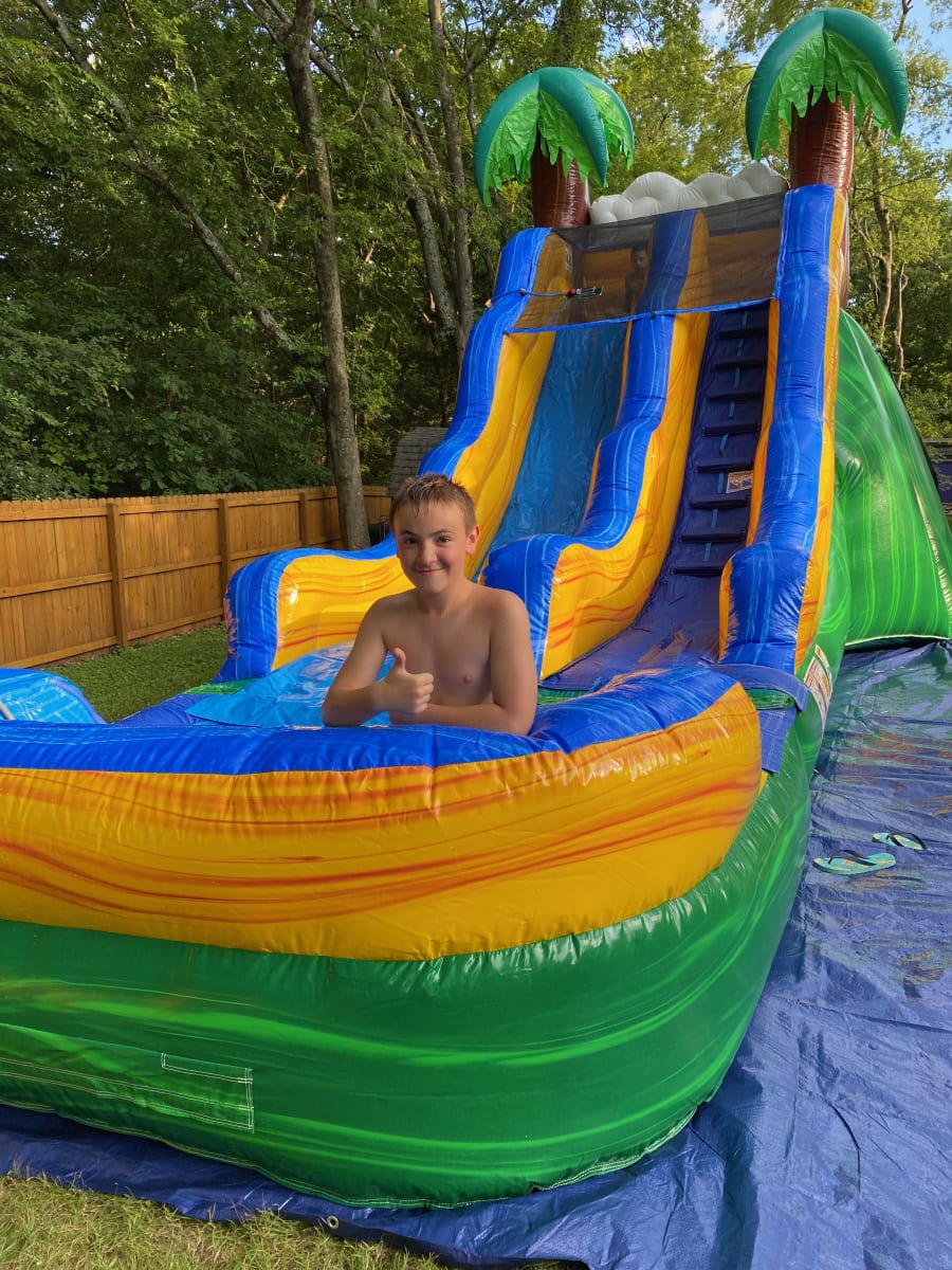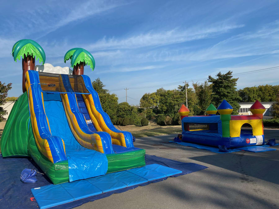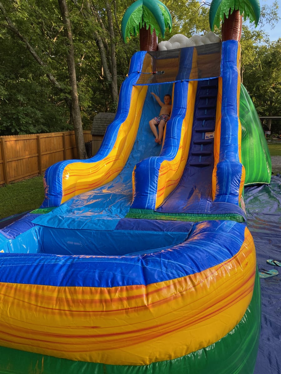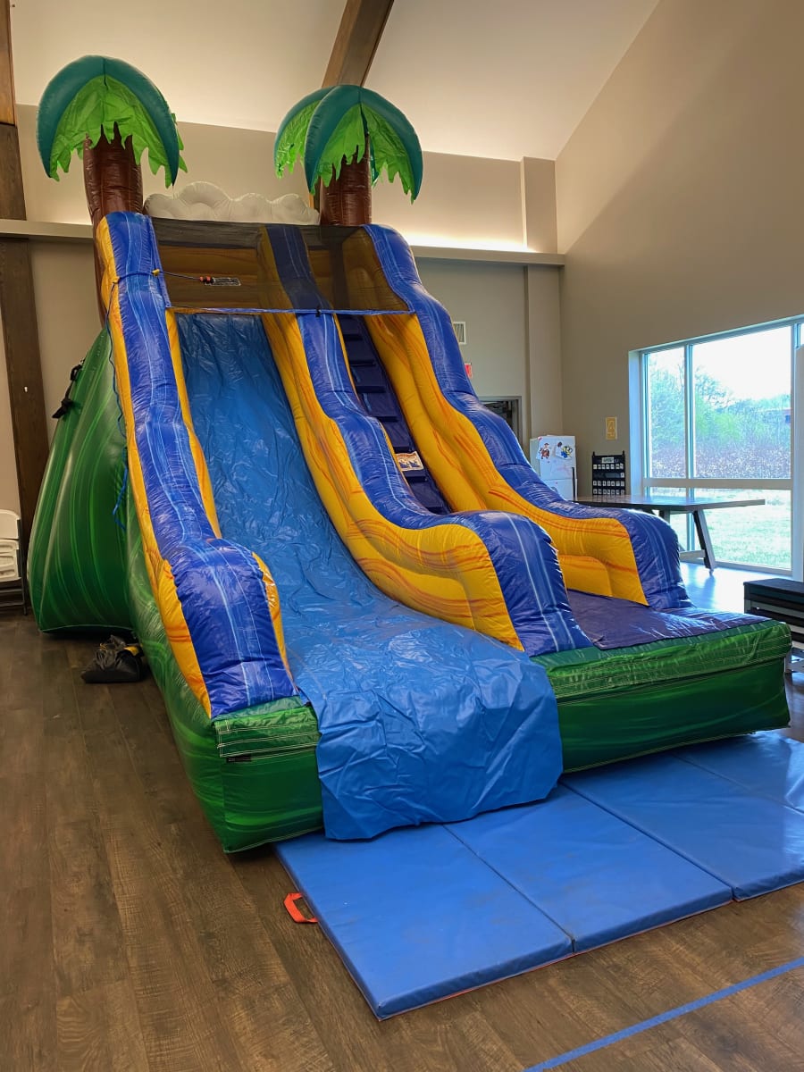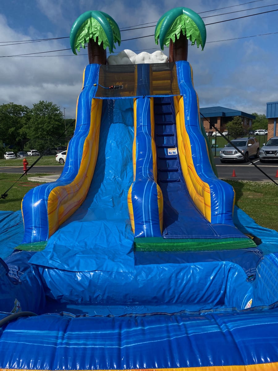 Are you ready to turn your backyard into a tropical oasis? Look no further than our Tropical Water Slide! Standing at an impressive 17 feet tall, this vibrant and thrilling water slide is perfect for all your party rental needs. Whether you're planning a backyard birthday party or a fun-filled summer gathering, this slide is sure to make a splash!