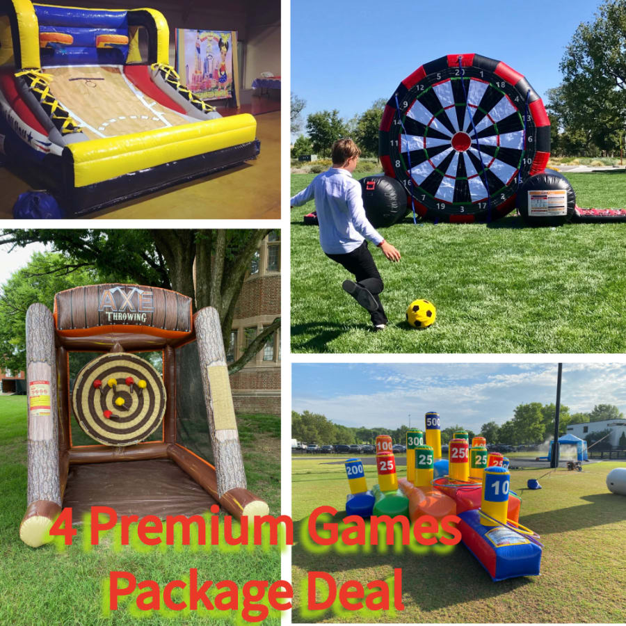 Get 4 of our premium inflatable games with this Package Deal! 🏀 🏈 ⚽️ 🎯