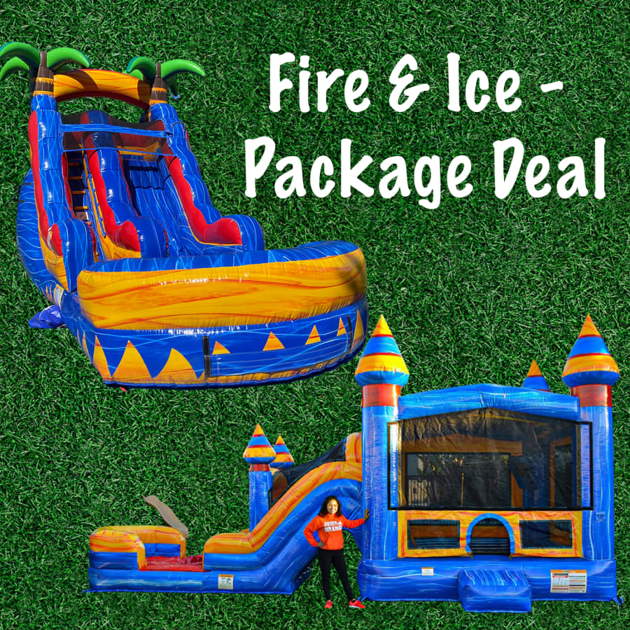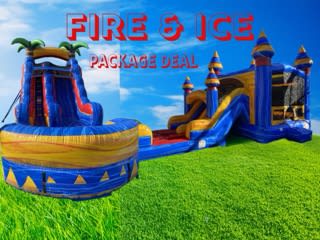 Book this package deal for unforgettable summer fun! This package combines our signature Fire & Ice - Water Slide with the Fire & Ice Bounce House/Slide Combo. Perfect for birthday parties, backyard BBQs, and community events. 🎉
