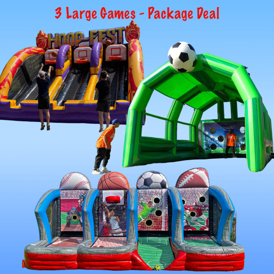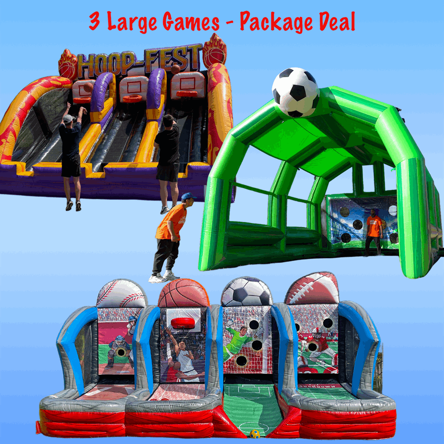You can mix and match any of our inflatables to create your own customized Package Deal for your event. We always offer a 10% Discount when renting more than 1 inflatable. Call, Text, or Email us to get a quote.